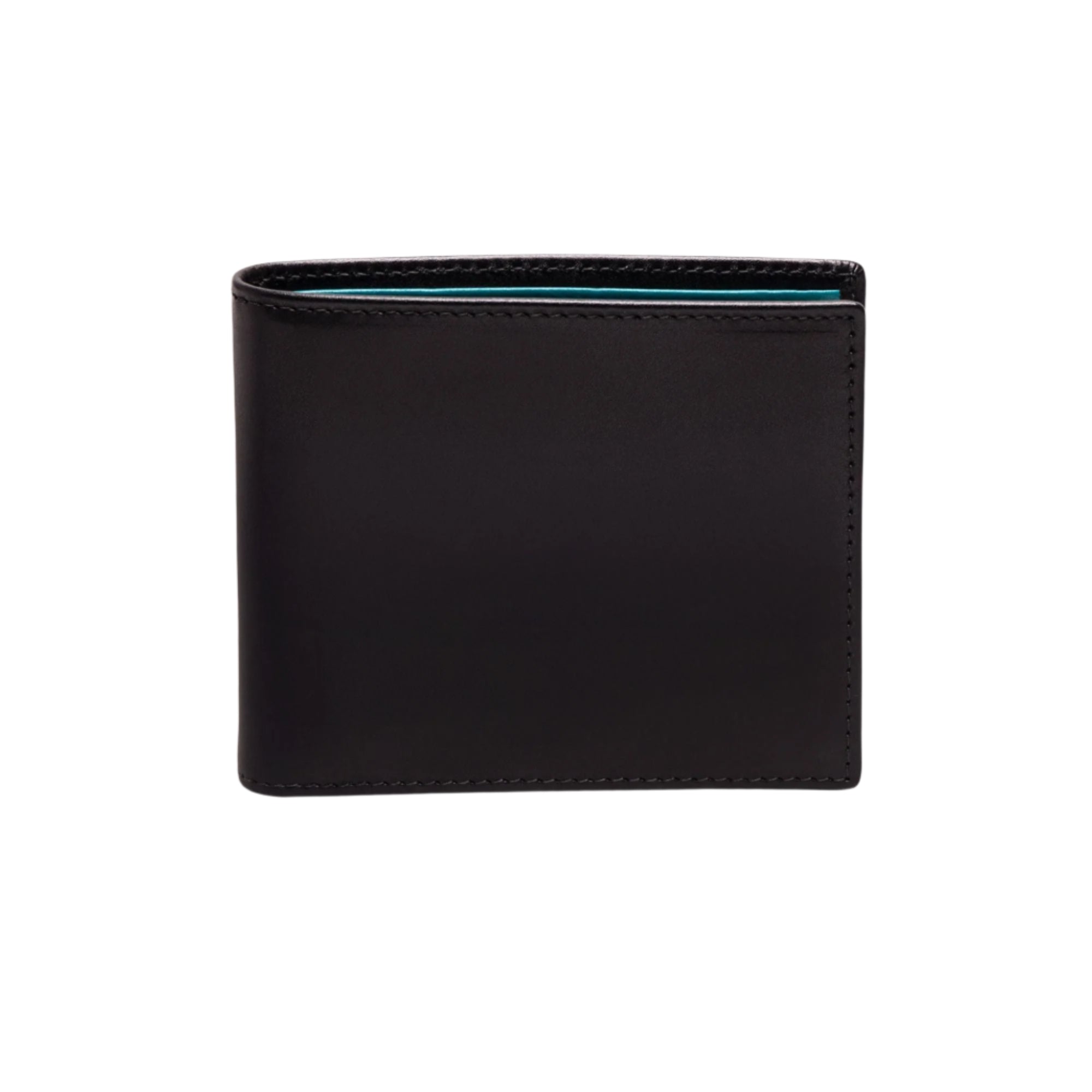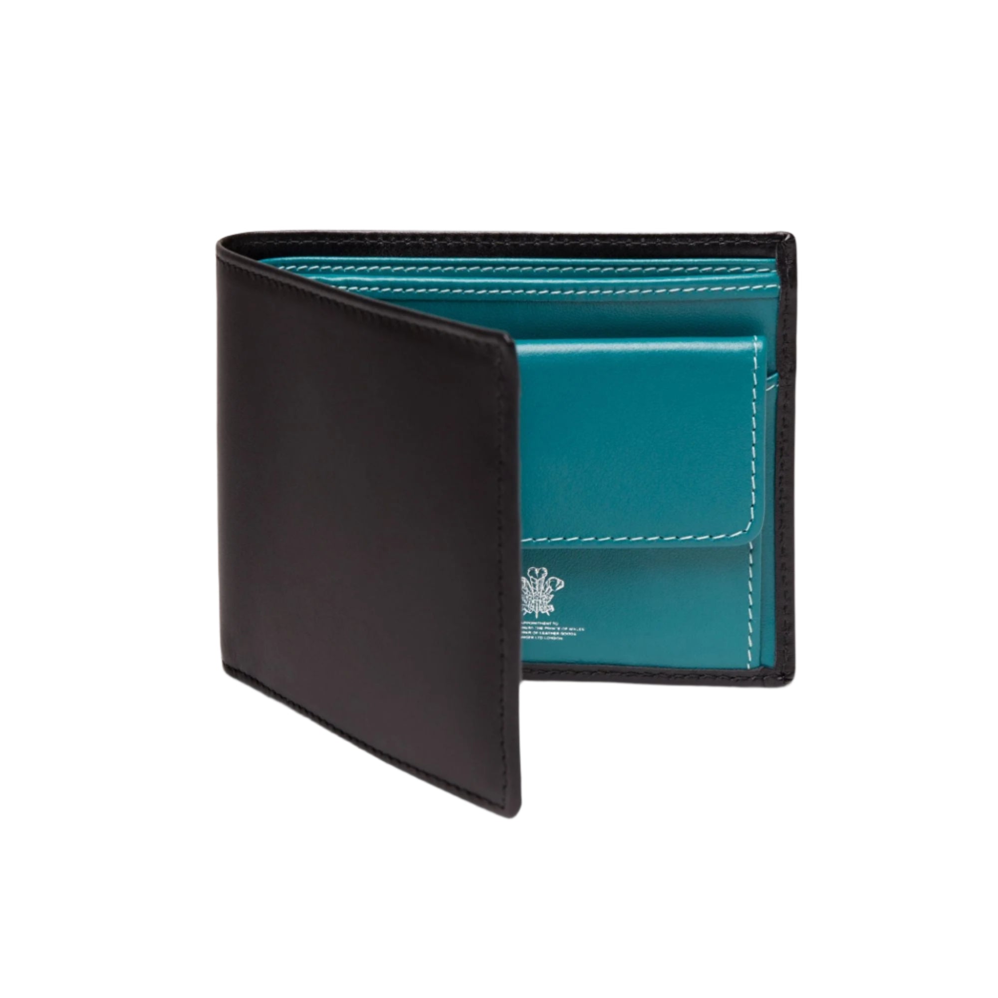 Inspired by the regal hues of the Sterling British banknotes, this billfold exudes style and elegance with a pop of colour on the inside. The neat coin purse means you can keep all your coins with your notes and cards securely together. The buttery soft leather interior is combined with a fine black calf exterior to lend the whole wallet a touch of extreme refinement and timeless appeal.