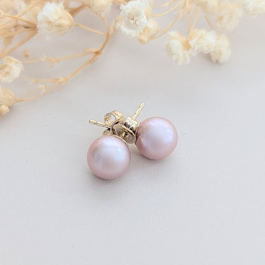 Delicate in hue and timeless in design, each earring features a softly iridescent 7–7.5mm round cultured freshwater pearl, mounted on classic 9ct yellow gold fittings. The gentle blush of the pearls lends a graceful warmth, making these earrings a refined choice for both everyday wear and special occasions.