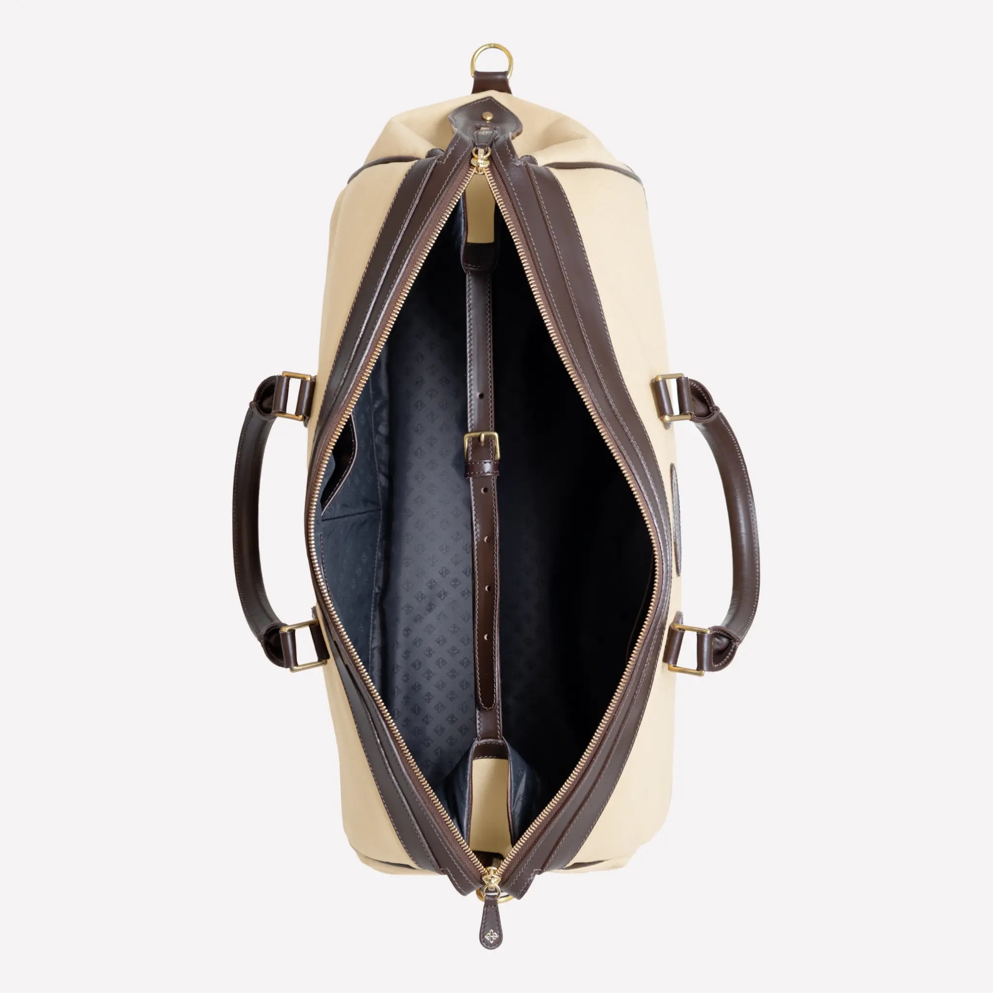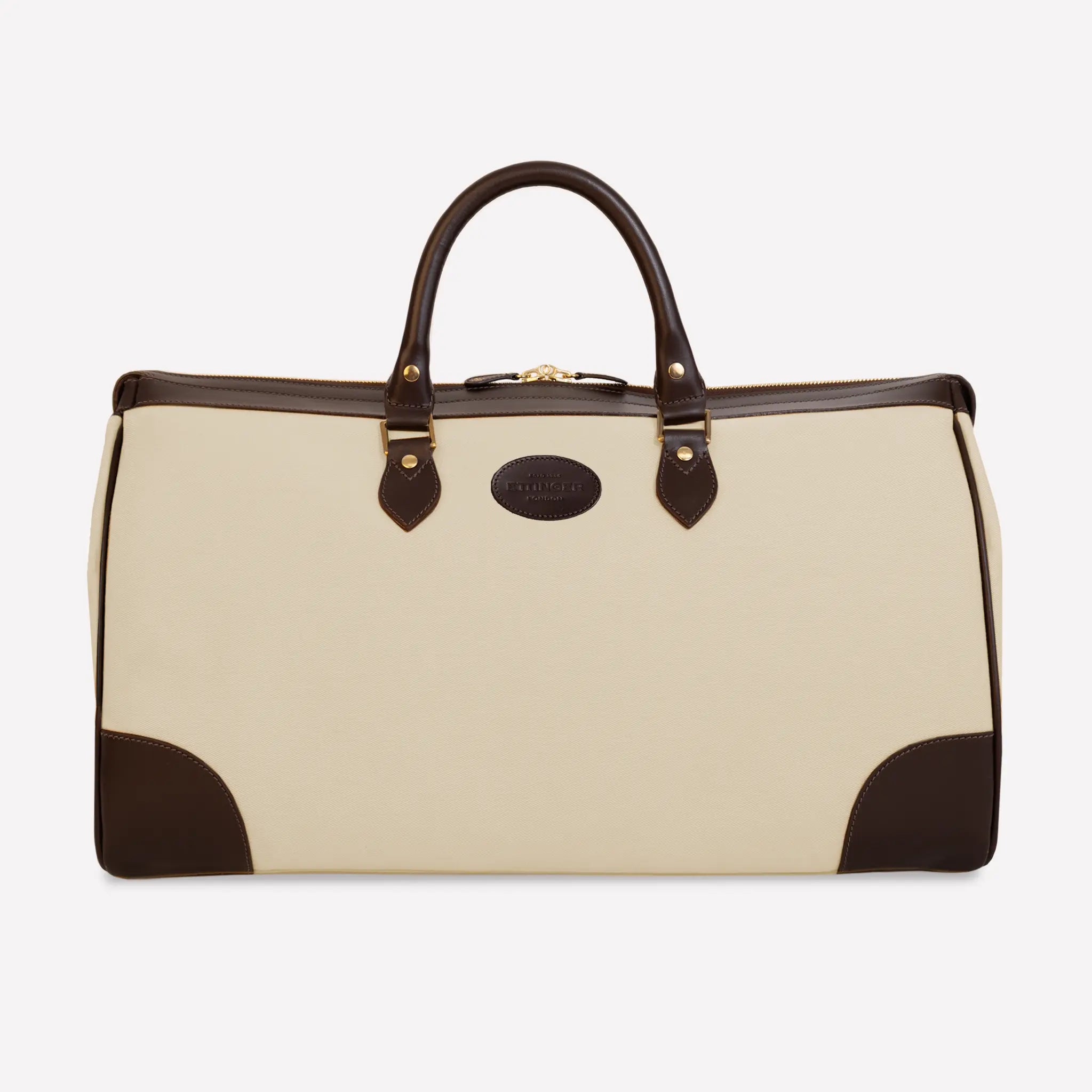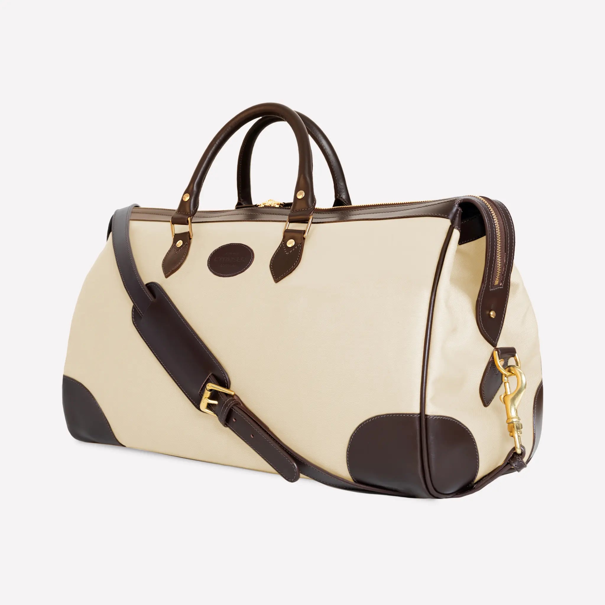 The larger of our two travel bags, The Cotswold is made for weekend escapes or to accompany larger luggage on long haul adventures. Crafted from durable, anti-stain cotton drill canvas, the Cotswold is beautifully framed by waxy cowhide trims in dark havana or black, giving it a quintessentially English look and feel. Made in England.