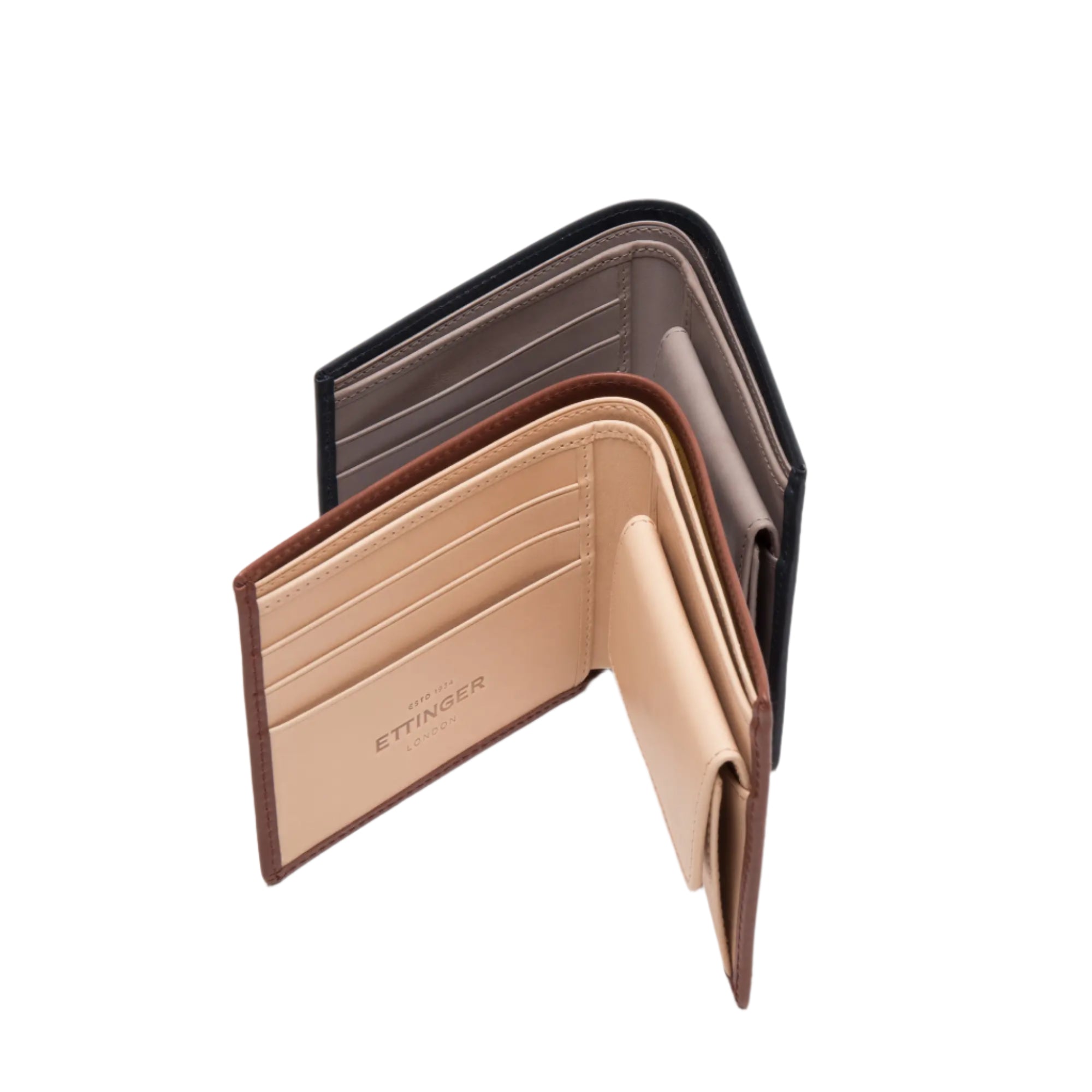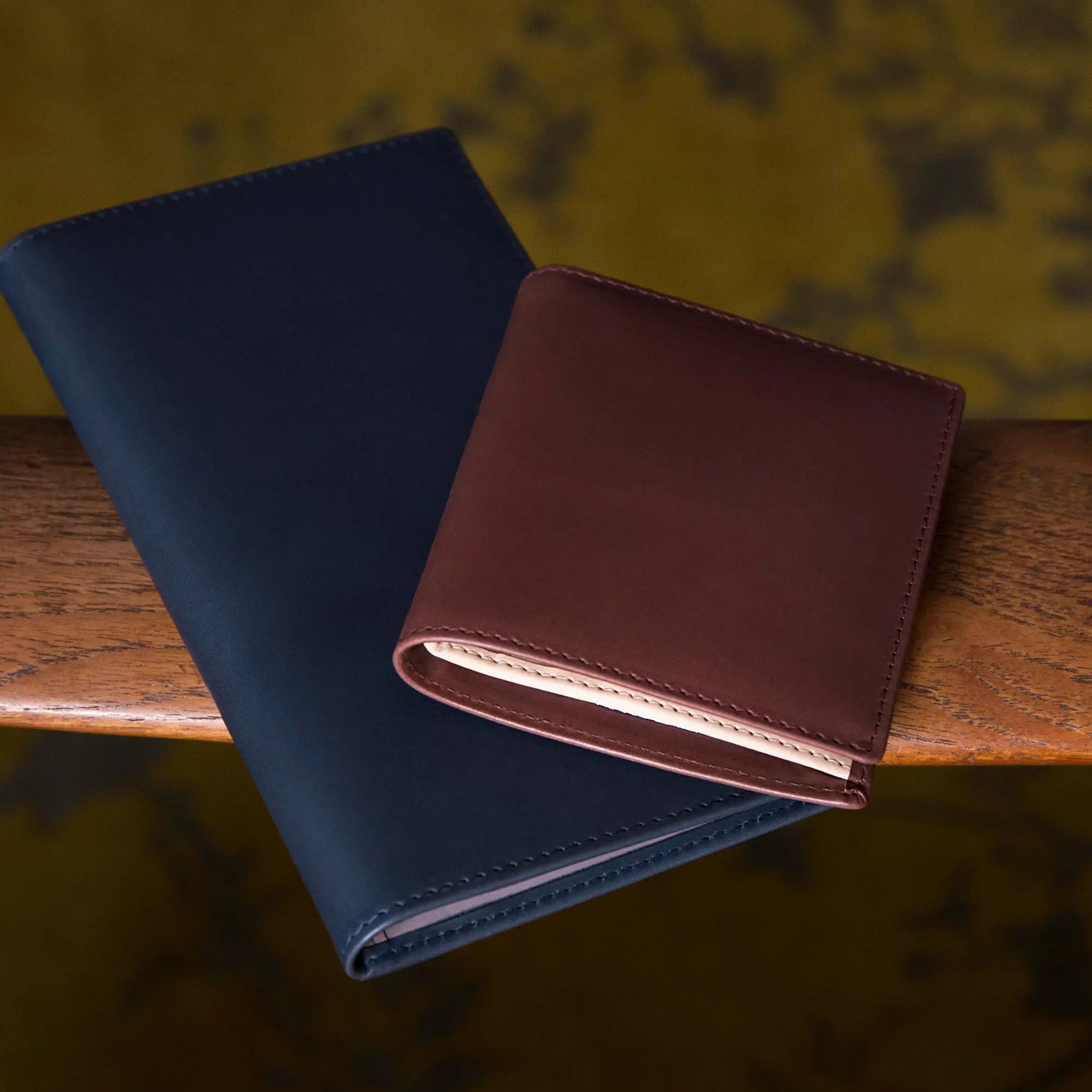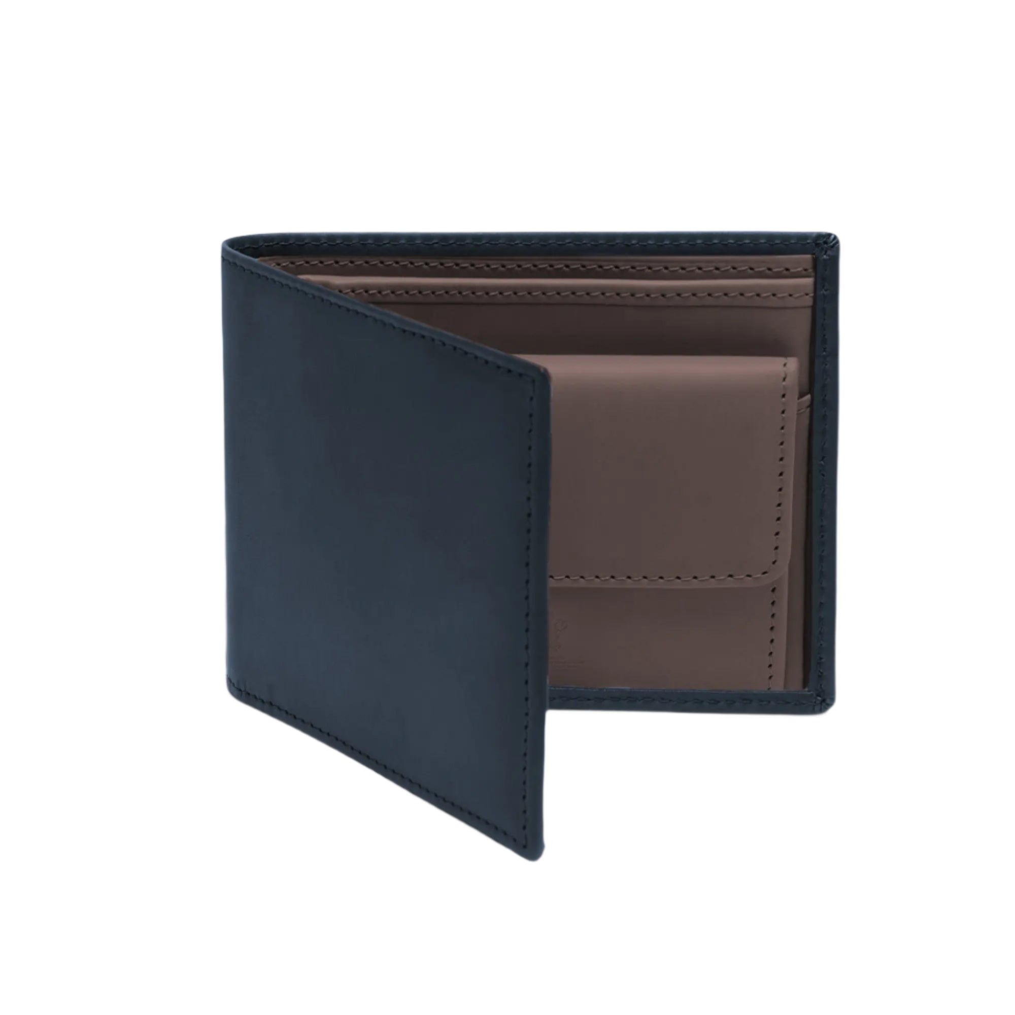 A card and coin wallet like no other, with its rich and matte hues of Deep Sea/Dry and Bracken/Eggshell to make it truly distinctive. Store your loose change, cash and cards in our finest calf leather billfold, that is vegetable tanned to preserve the natural beauty of the leather, finished in a very subtle way to give it an exceptionally silky touch and allow it to burnish naturally. Over time, every touch and stroke will gently burnish the delicate leather, giving it a unique patina and a rich personality, like no other.